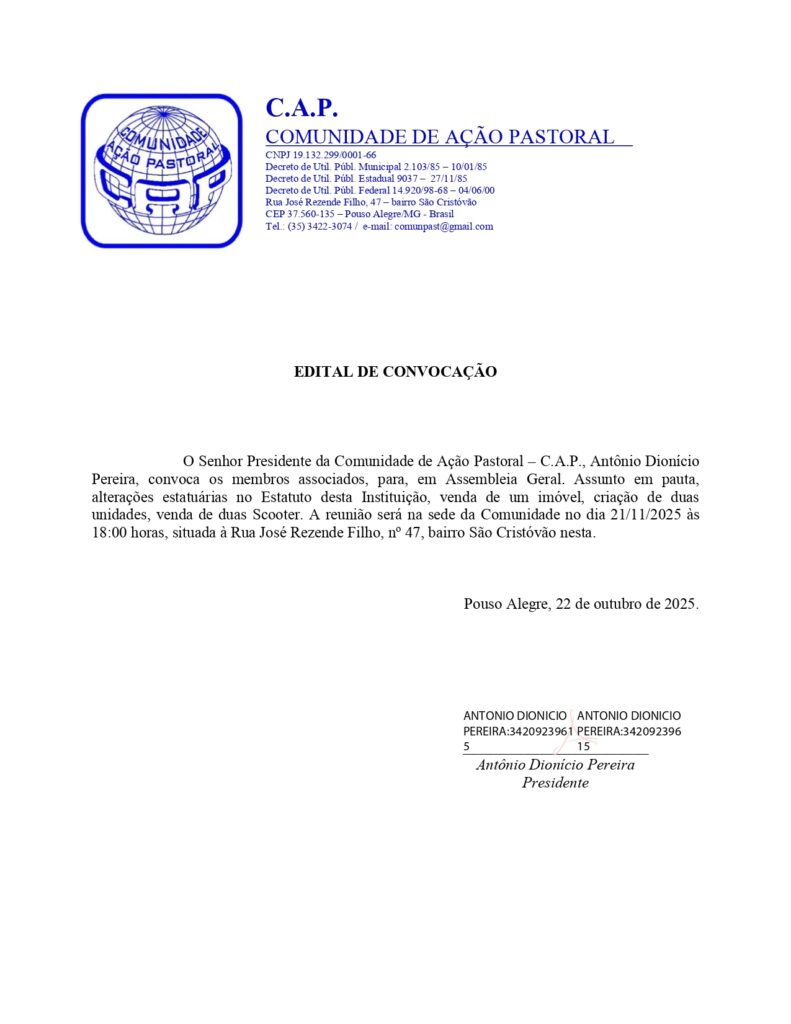 EDITAL DE CONVOCAÇÃO – ASSEMBLÉIA GERAL DA CAP