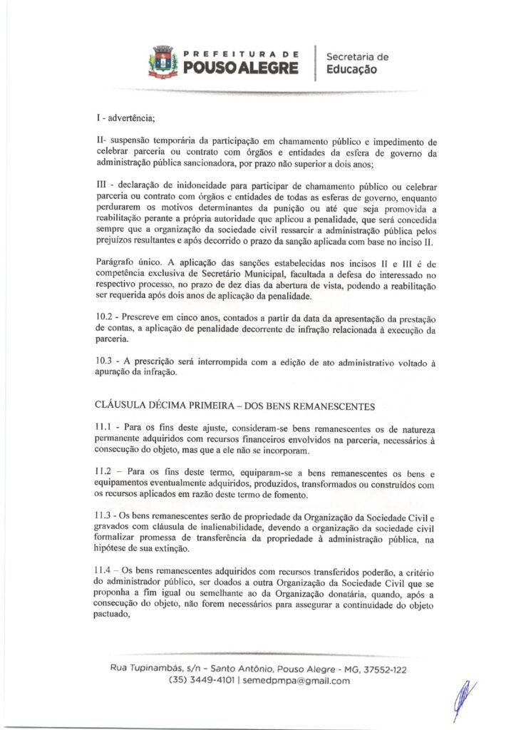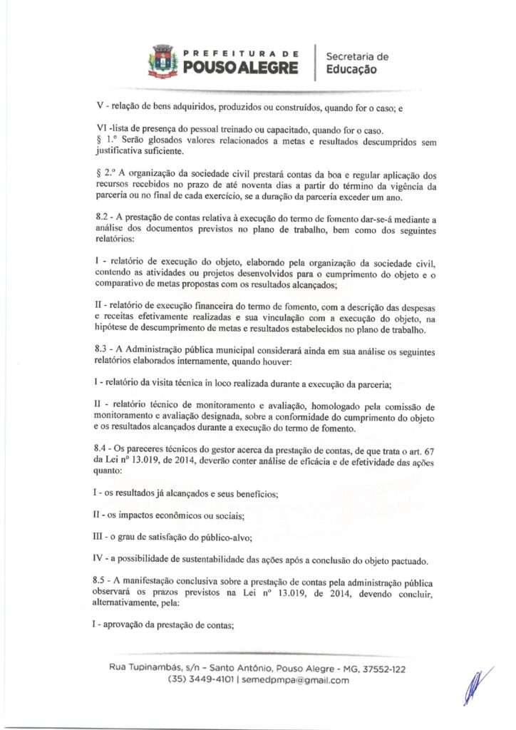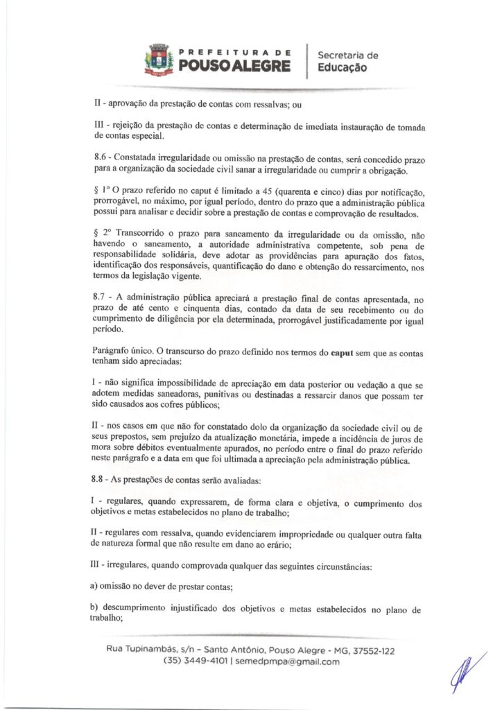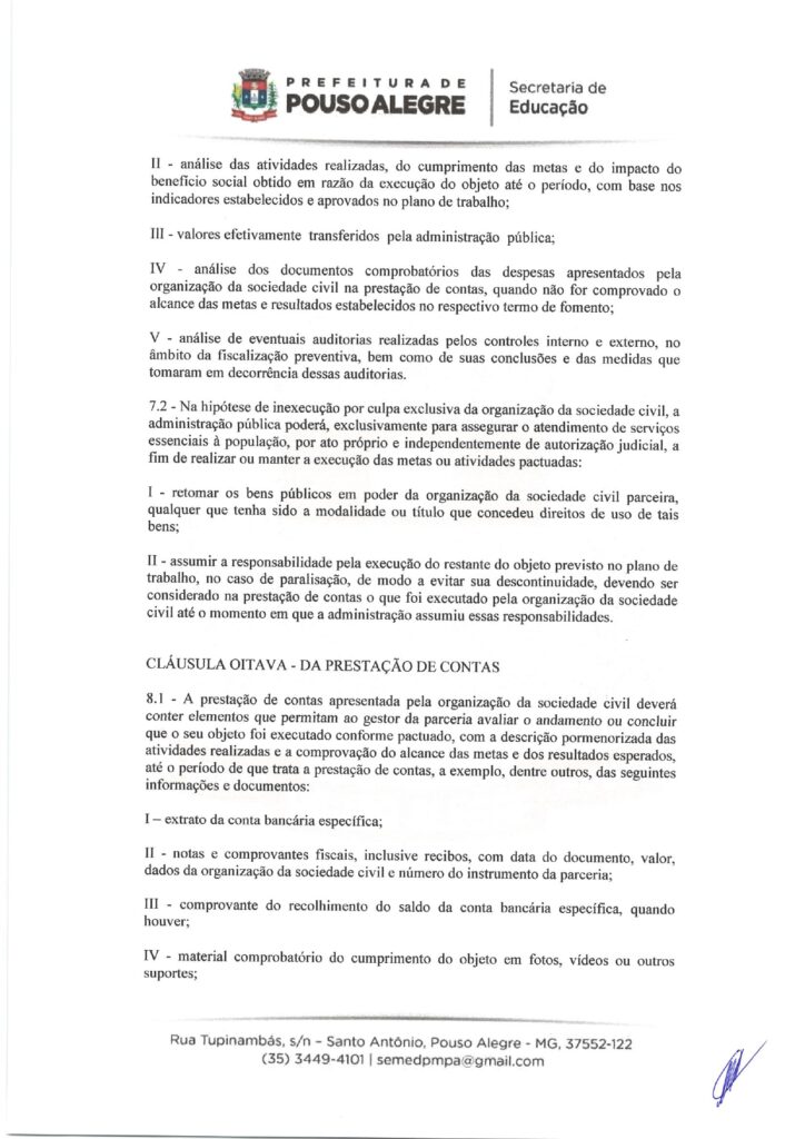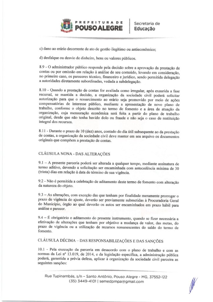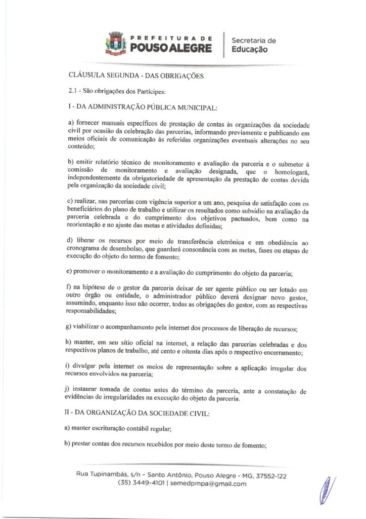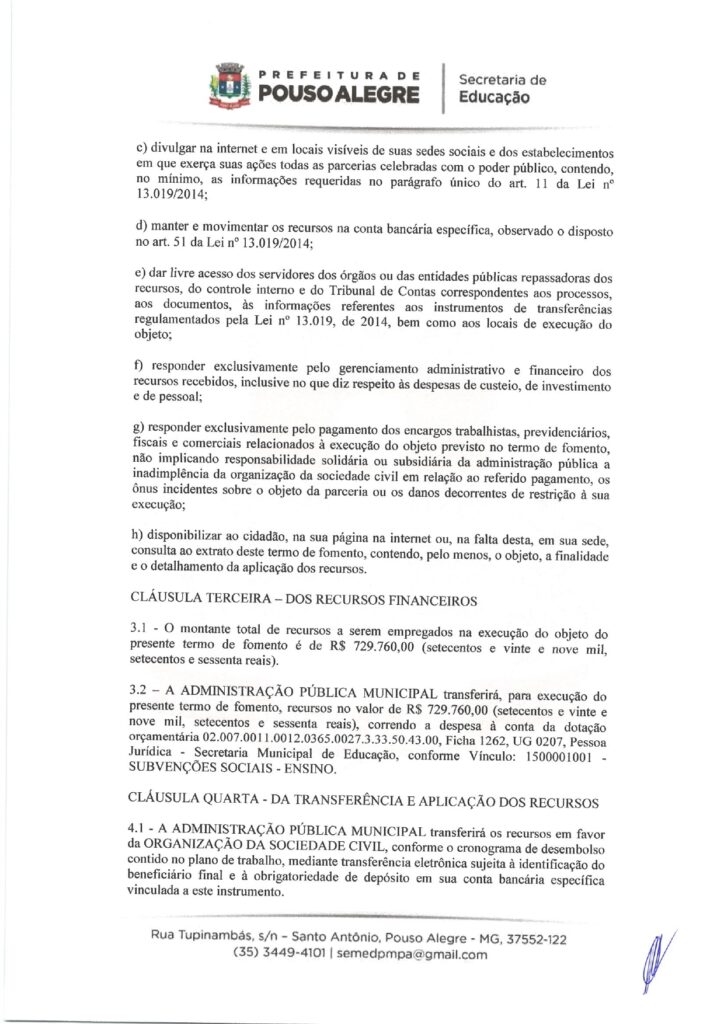 EDUCAÇÃO – TERMO DE FOMENTO nº 0013/2026, celebrado com o Município de Pouso Alegre (Secretaria Municipal de Educação).