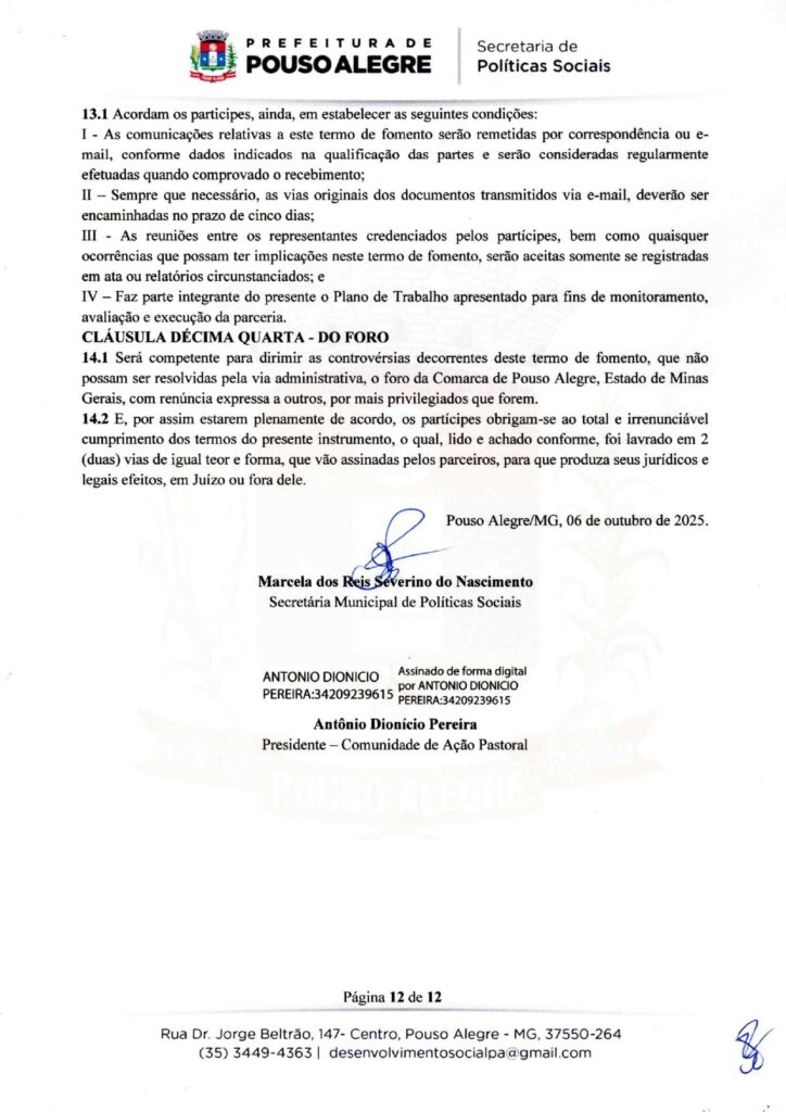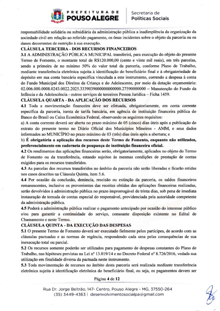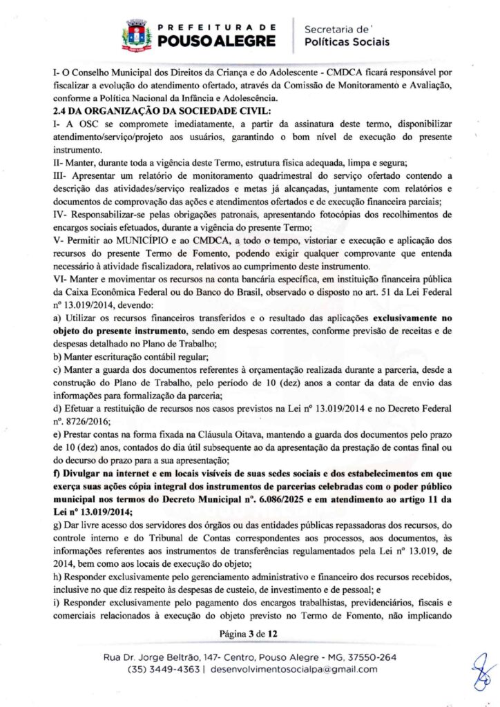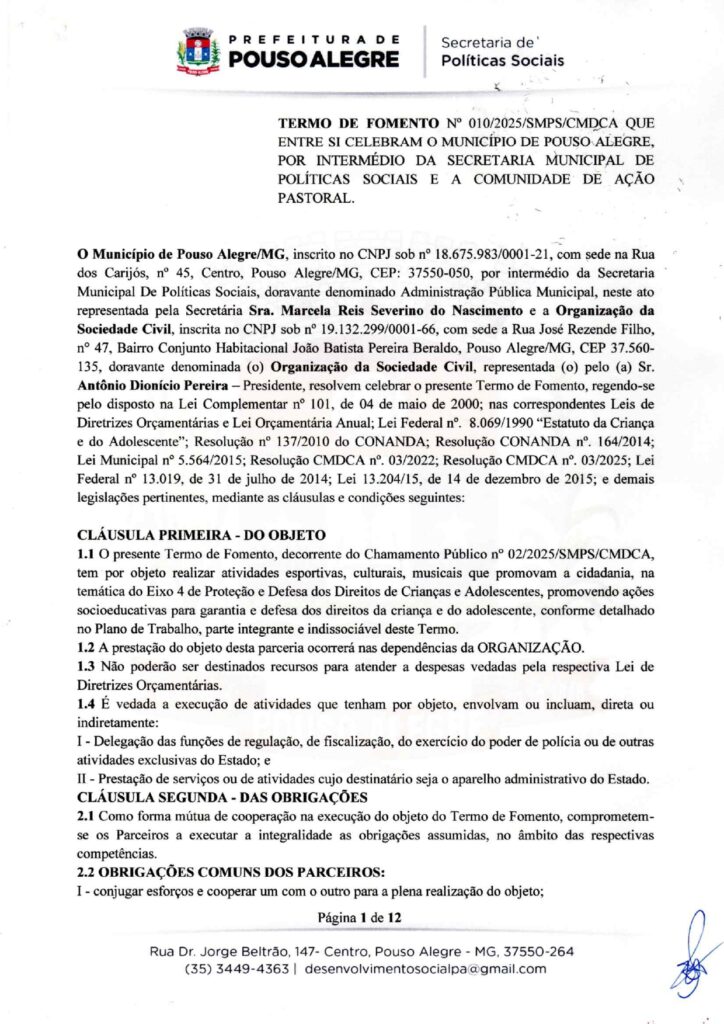Fomento 010/2025/SMPS celebrado com a Secretária de Políticas Sociais e Conselho Municipal do direito das Crianças e Adolescentes CMDCA